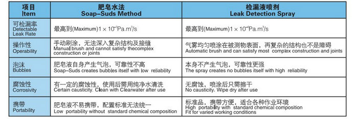 噴涂于被測對象表面,通過產(chǎn)生微小穩(wěn)定的氣泡來檢測泄漏